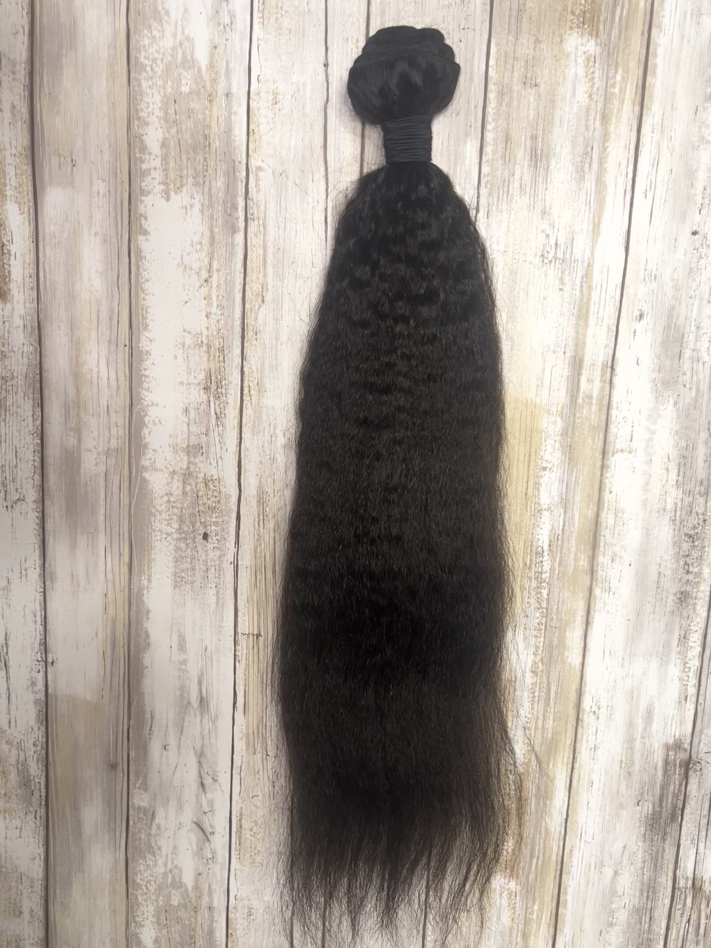 Natural dark brown kinky curly, loose curly, and kinky straight.